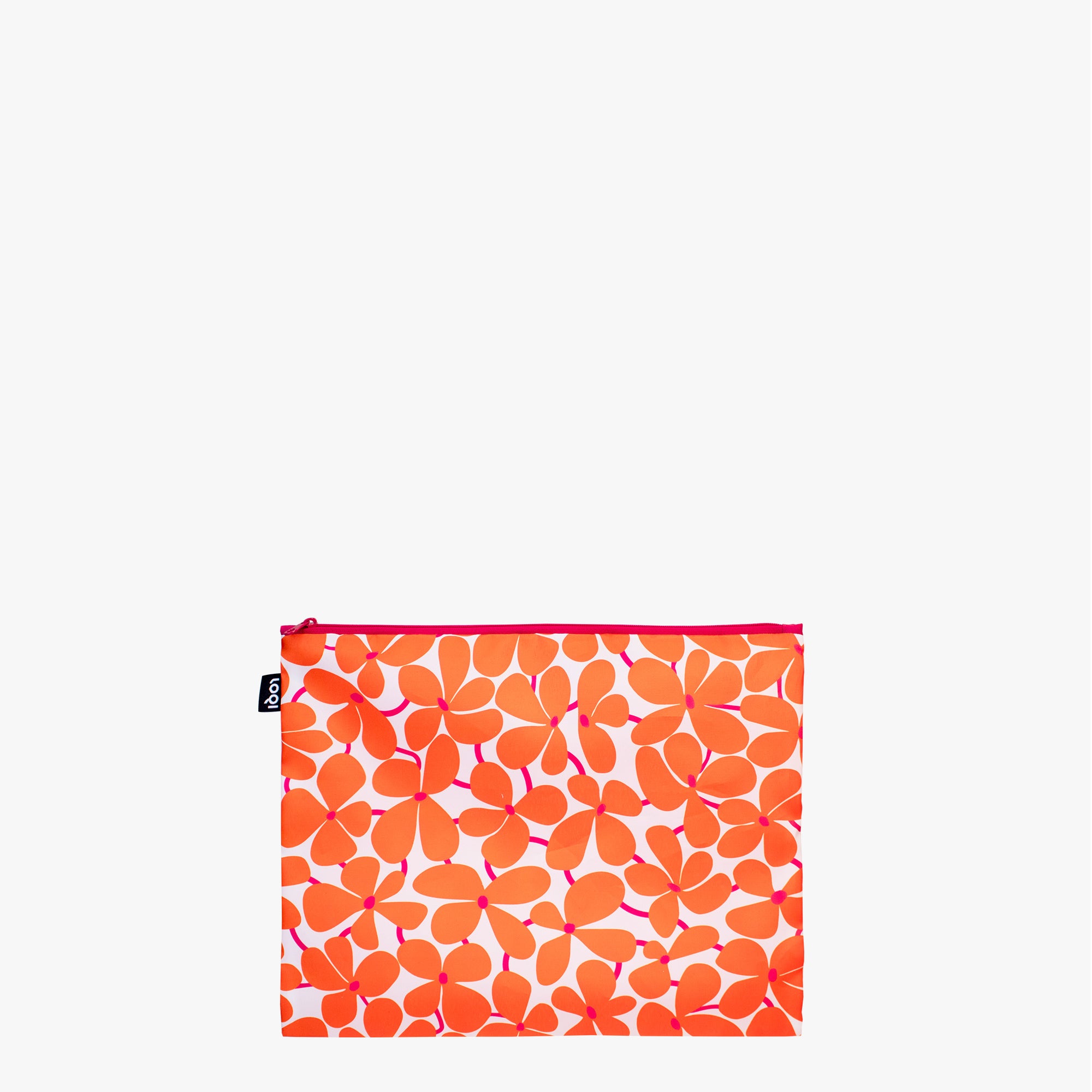 These Scandinavian–style zip pockets feature bold, graphic prints inspired by mid–century designer STIG LINDBERG. With vibrant red petals, geometric green leaves and playful apples, they add a pop of retro charm to your daily essentials. Perfect as eco–friendly organizers, travel pouches or stylish accessories for lovers of Nordic design © Stig Lindberg